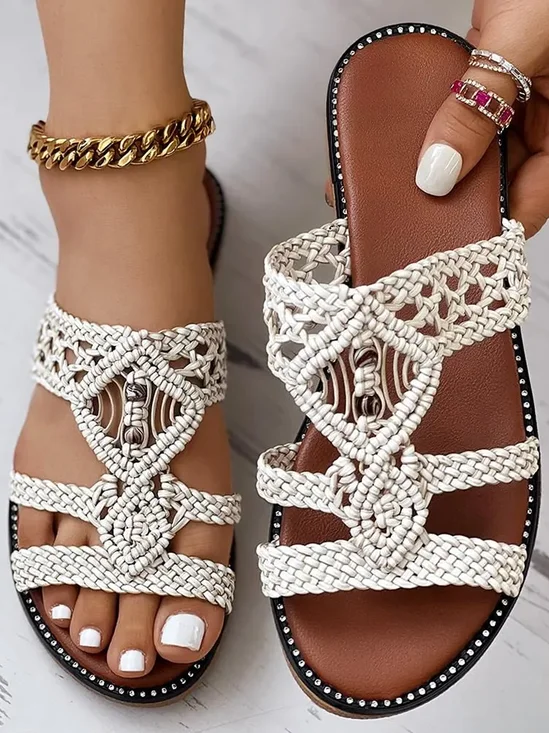 Boho Plain Slip On Flat Heel Flip Flop Braided