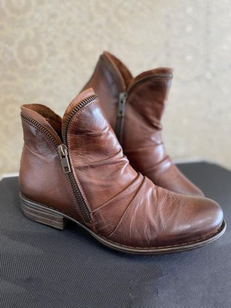 British Style Round Toe Comfortable Zip Low Heel Booties