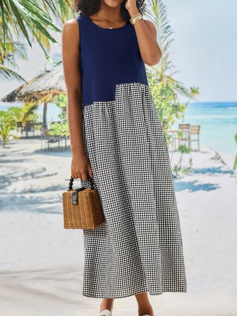 wedding guest dress Vintage Plain Sleeveless Crew Neck Casual Dress