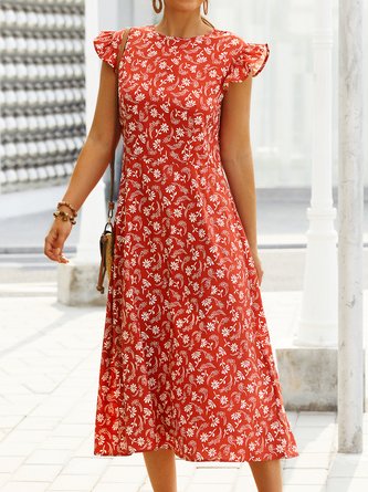 Women Floral Crew Neck Short Sleeve Comfy Casual Midi Dress
