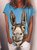 Casual 3D Printing V Neck Three Quarter Sleeve T-shirt