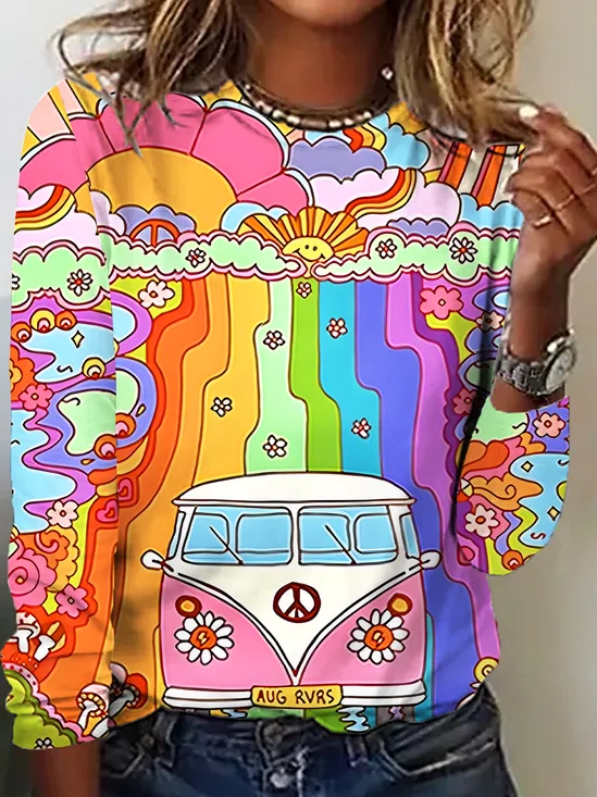 Casual Bohemian Painting Crew Neck Long Sleeve T-shirt
