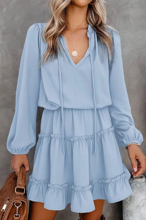 Women Plain Spring/Fall Split Joint Dress V Neck Long Sleeve Party Dress A-Line Dress
