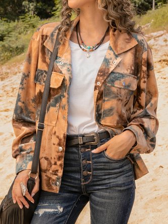 Women Spring/Fall Outerwear Vintage Printing Abstract Long Sleeve Shawl Collar Jacket