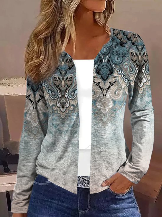 Women Spring/Fall Outerwear Vintage Gradient Pattern Three Quarter Sleeve Jacket