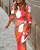 Women Floral V Neck Three Quarter Sleeve Comfy Casual Midi Dress