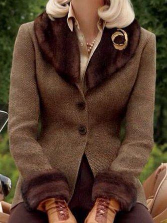 Women Winter Outerwear Vintage Plain Long Sleeve Shawl Collar Jacket