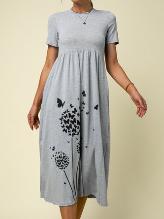 Women Floral Crew Neck Short Sleeve Comfy Casual Midi Dress