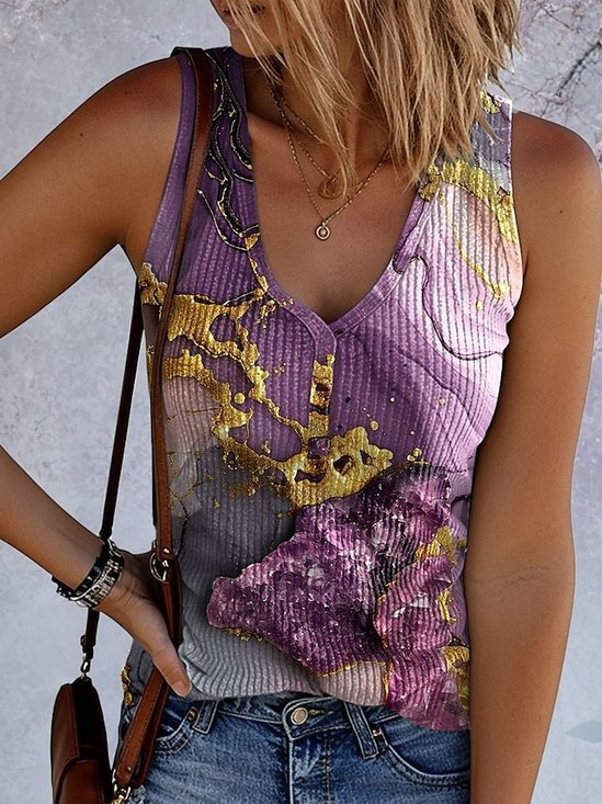 Casual V Neck Abstract Tank Top
