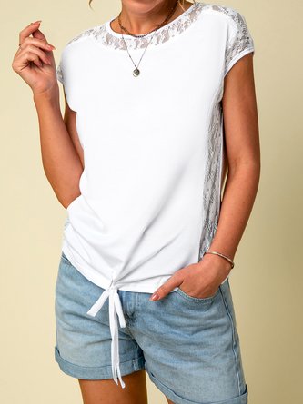 V Neck Short Sleeve Plain Buckle Regular Micro-Elasticity Regular Fit Button Up Shirt Shirt For Women