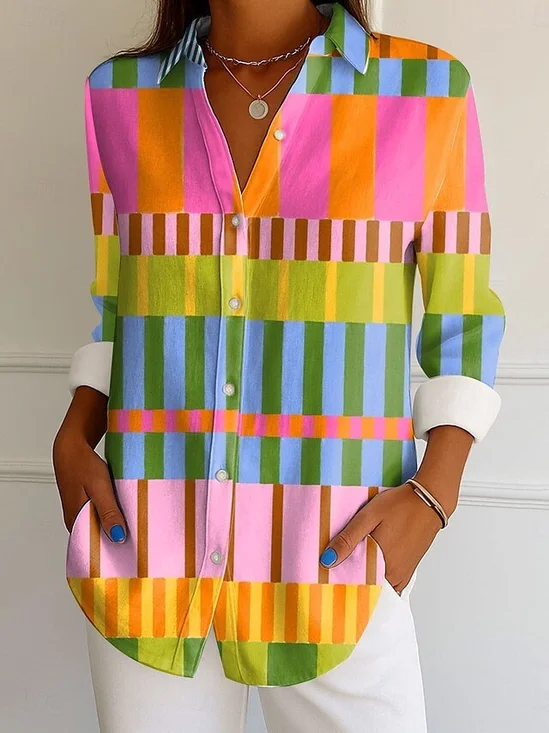 Shirt Collar Regular Sleeve Long Sleeve Festival Buckle Regular Loose Button Up Shirt Shirt For Women