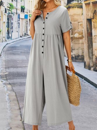 Women Short Sleeve V Neck Loose Ankle Pants Buckle Daily Vacation Plain Natural Jumpsuit