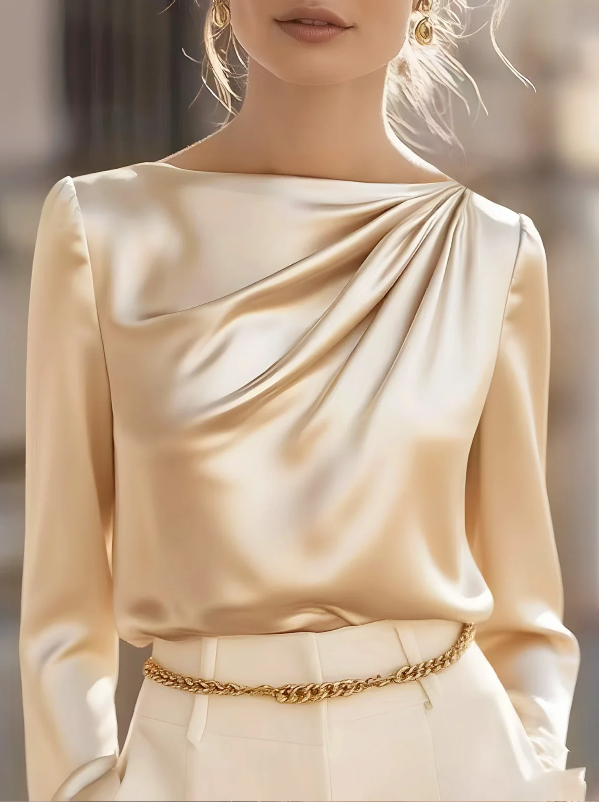 Boat Neck Long Sleeve Plain Regular Loose Shirt For Women