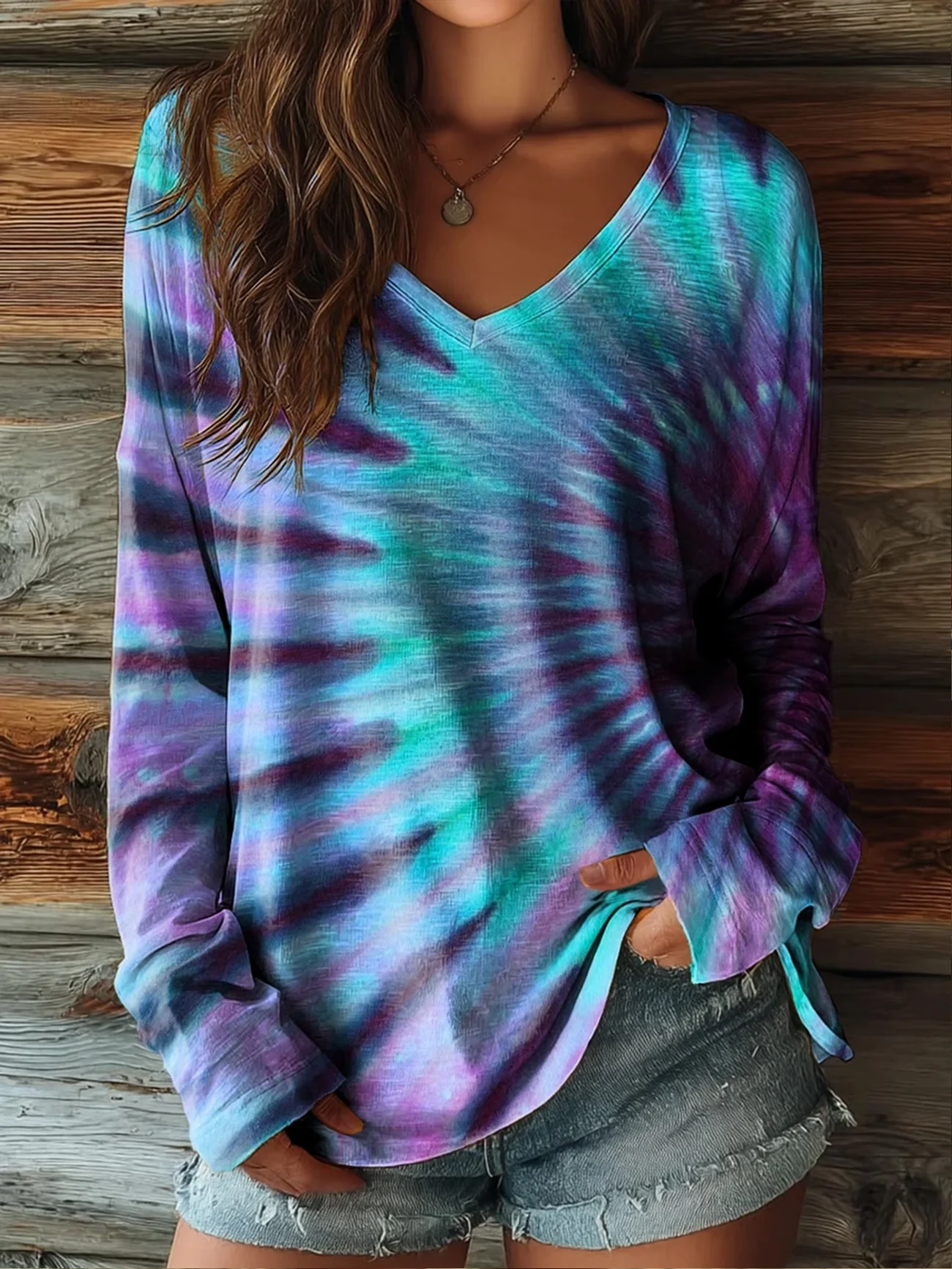 Casual Abstract V Neck Long Sleeve T-shirt
