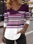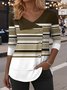 Casual Colorblock V Neck Long Sleeve T-shirt