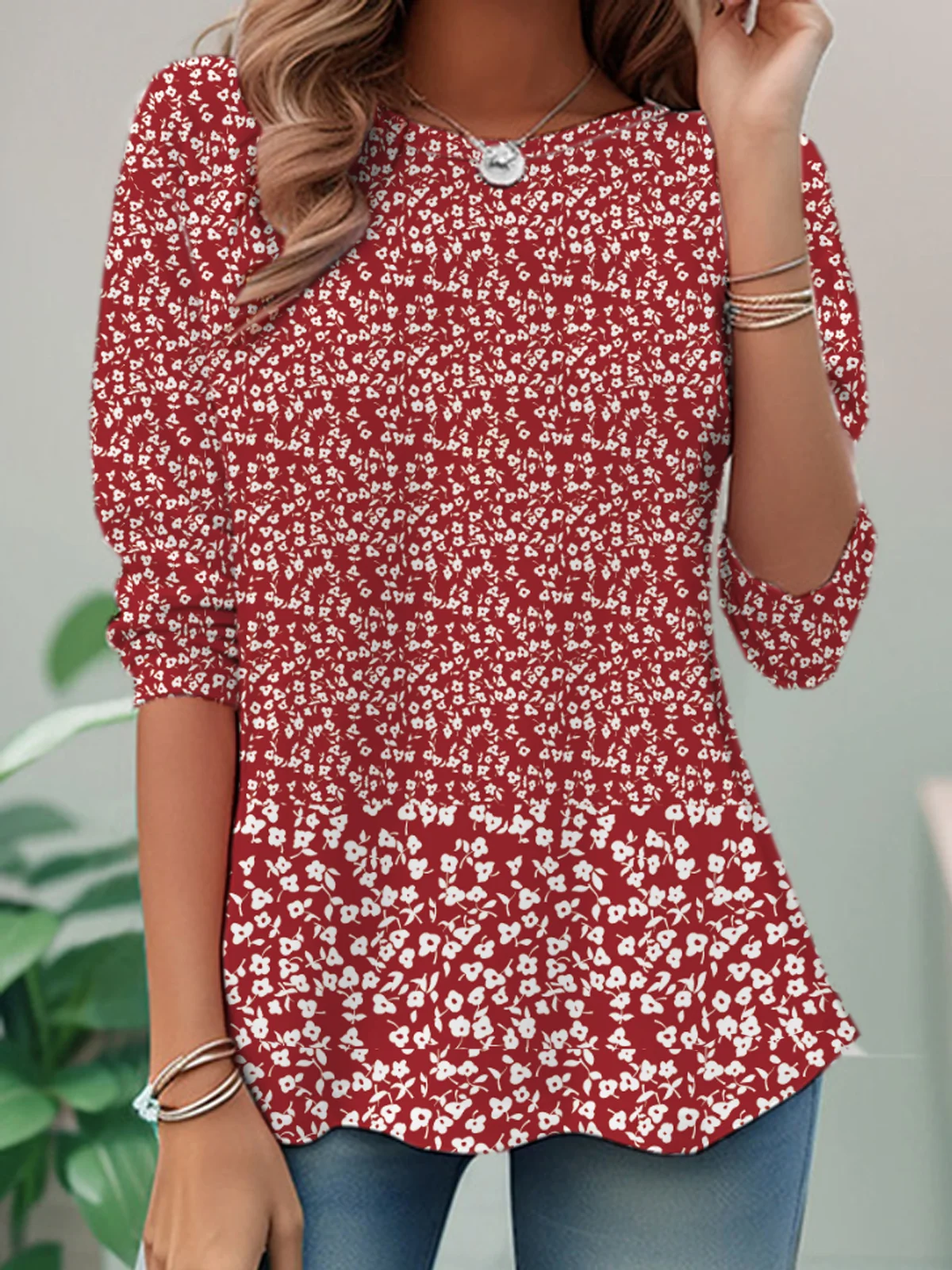 Casual Floral Crew Neck Long Sleeve T-shirt