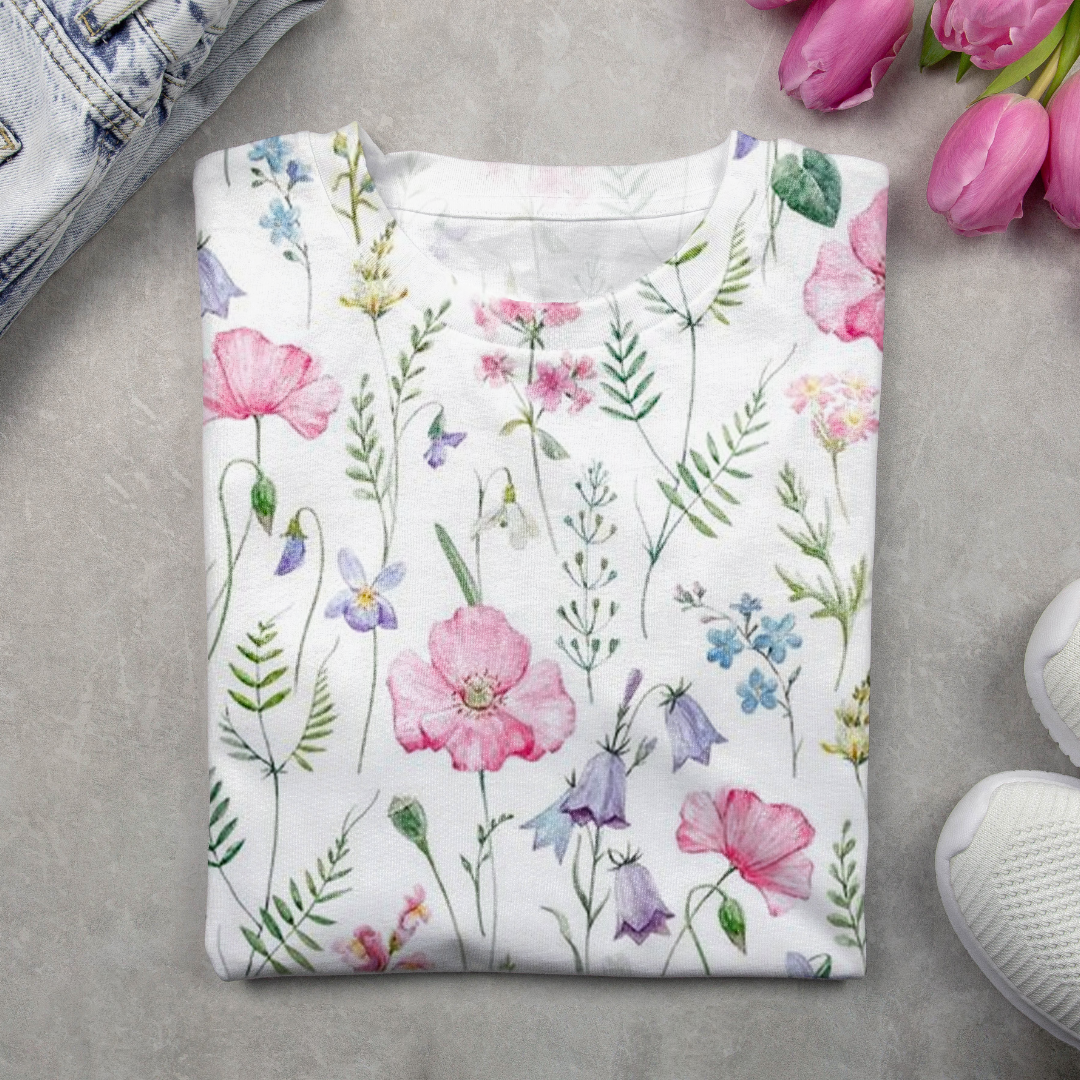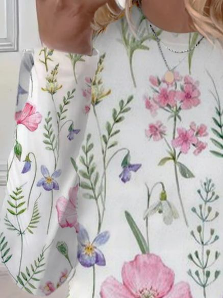 Casual Floral Print Crew Neck Long Sleeve T-shirt