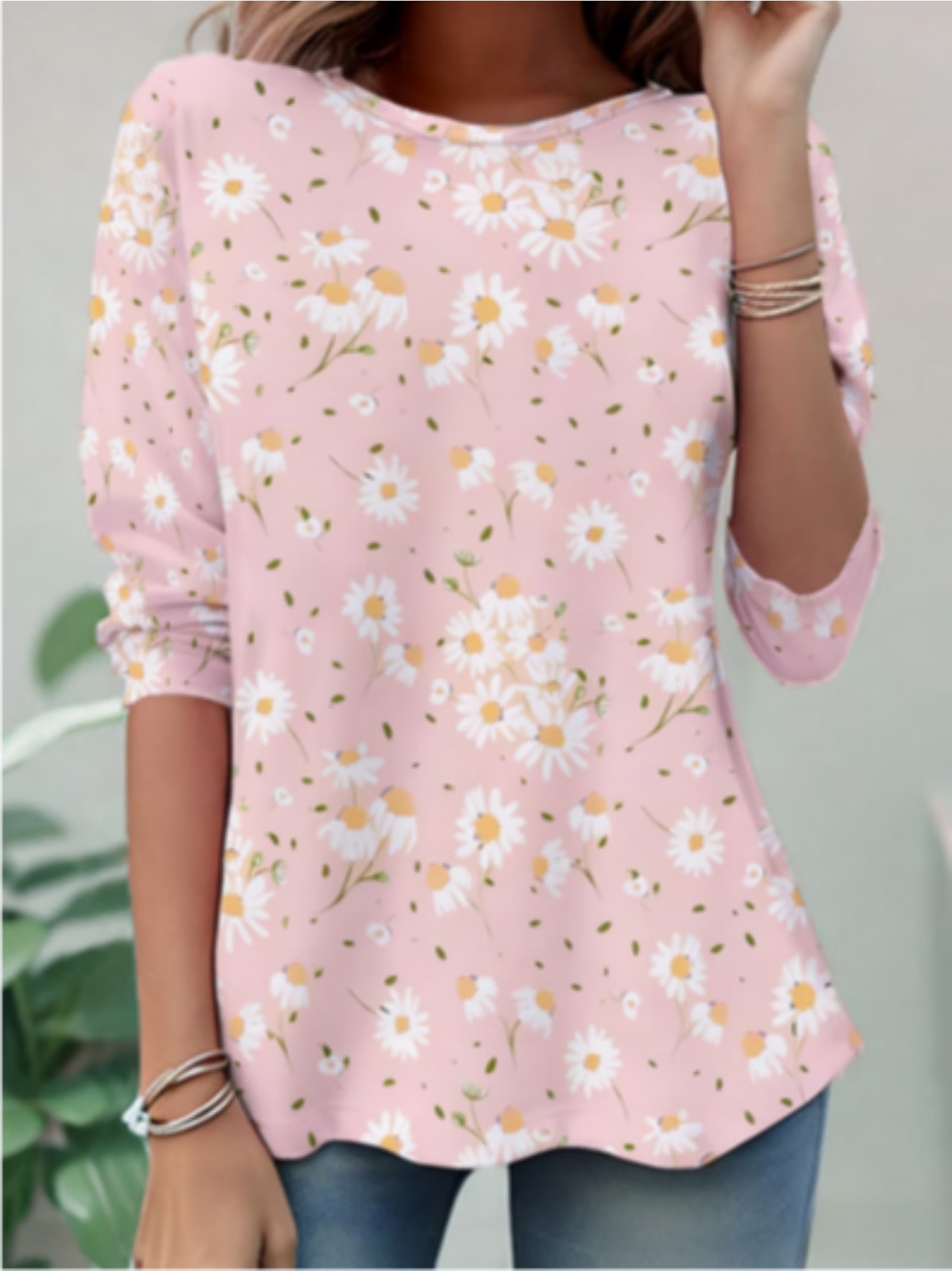 Casual Floral Crew Neck Long Sleeve T-shirt
