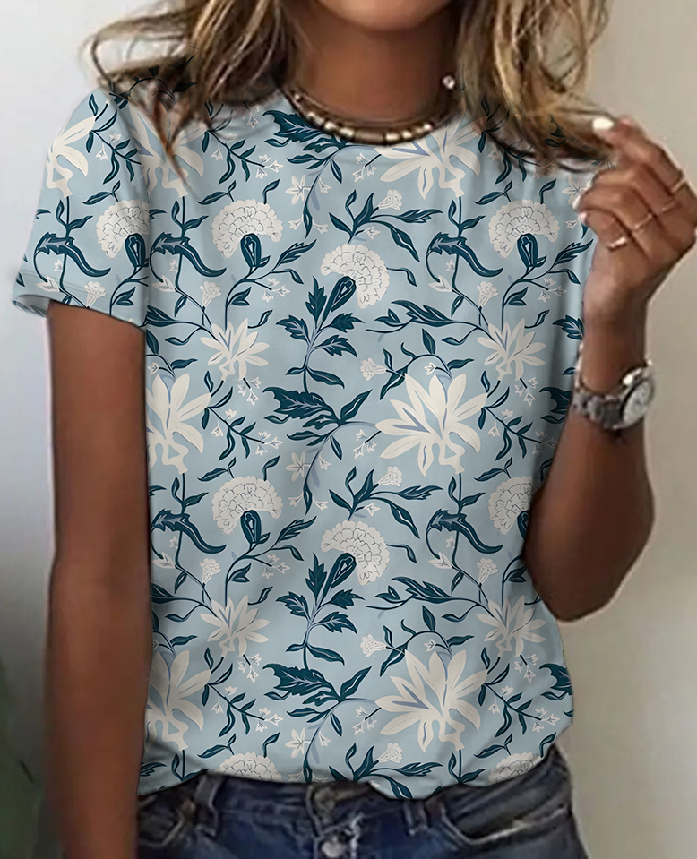 Casual Floral Crew Neck Short Sleeve T-shirt