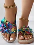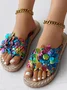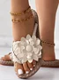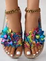 Casual Floral Slip On Flat Heel Slide Sandals Applique