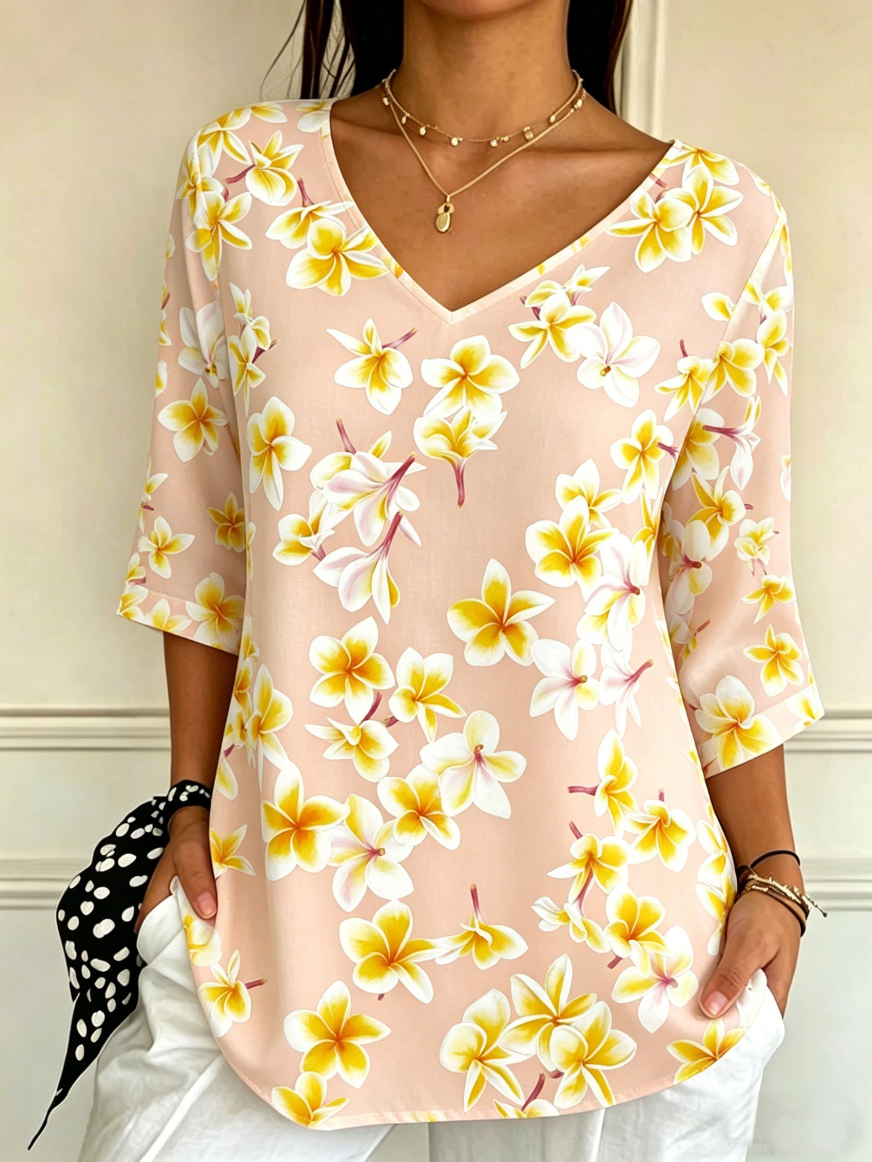 Casual Floral V Neck Short Sleeve T-shirt