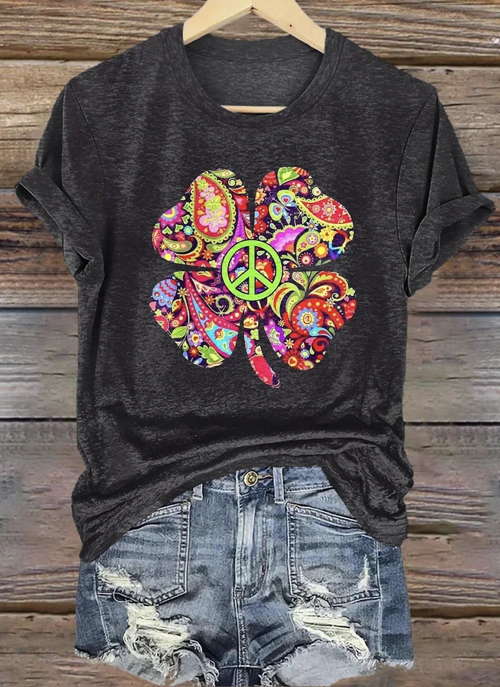 Casual Geometric Crew Neck Short Sleeve T-shirt