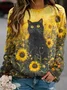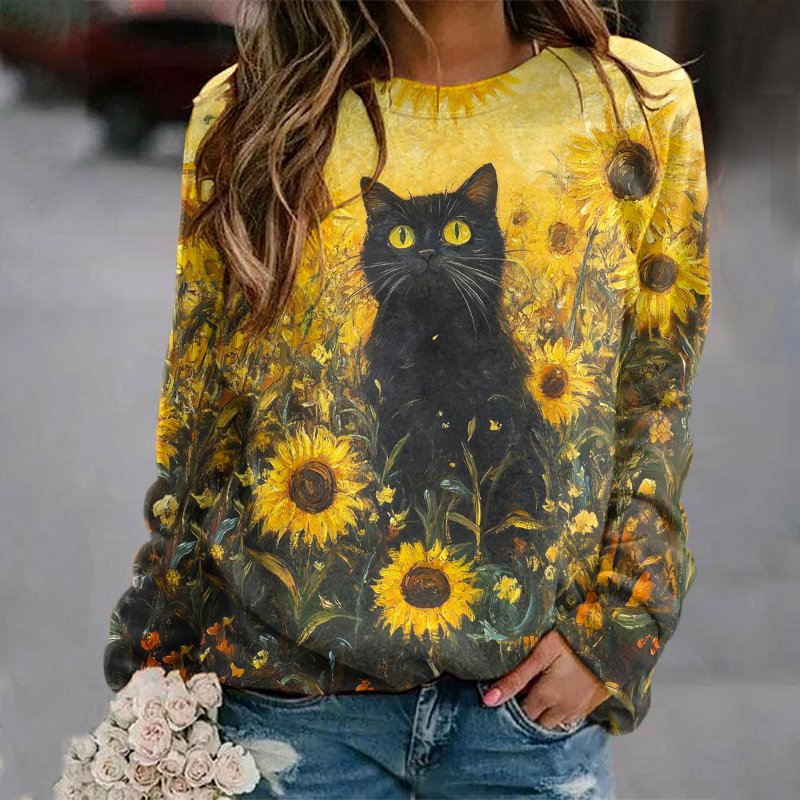 Casual Cat And Sunflower Art Pattern Long Sleeve Comfy Sweatshirt