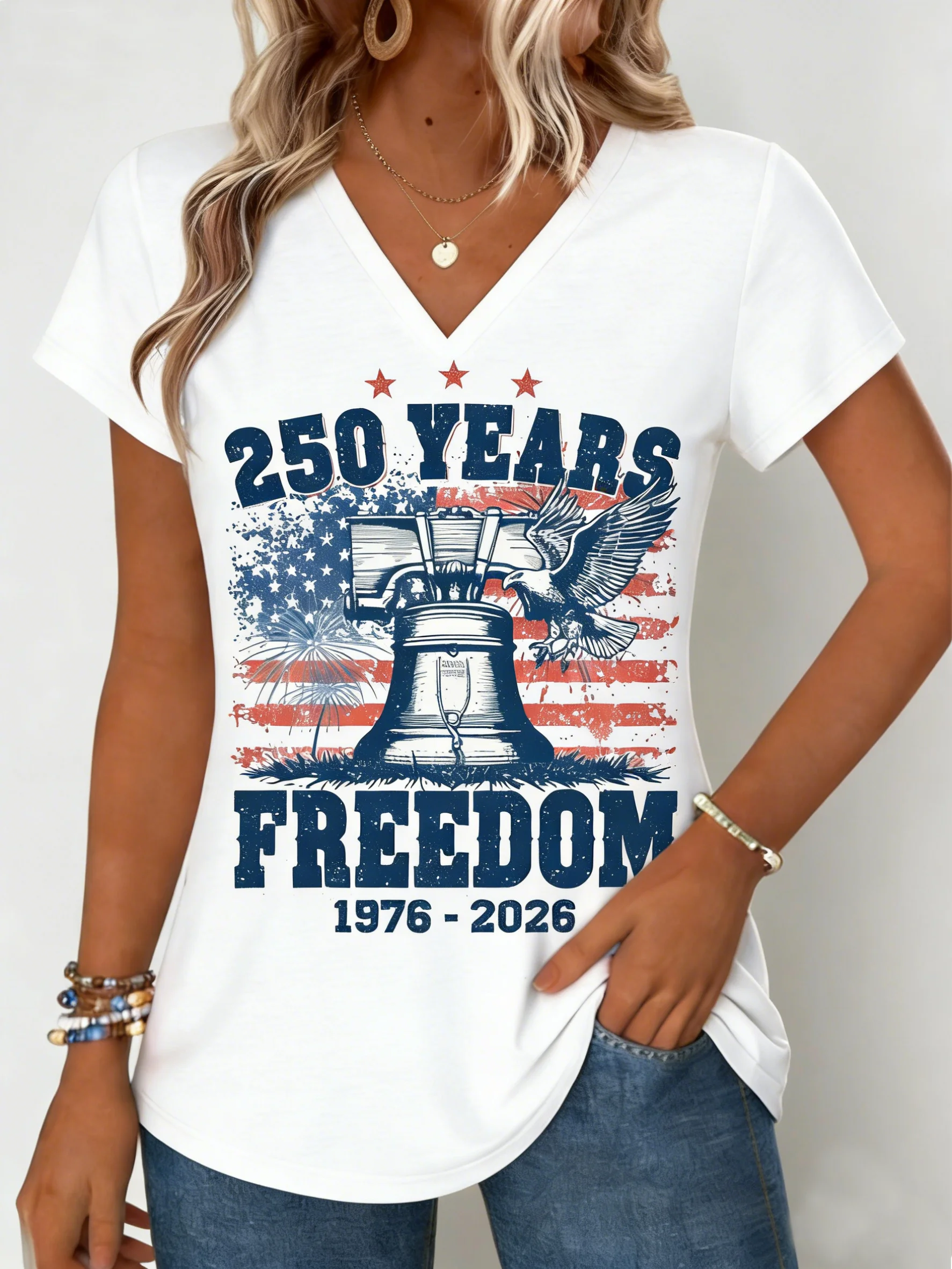 Casual Letter Pattern V Neck Short Sleeve T-shirt