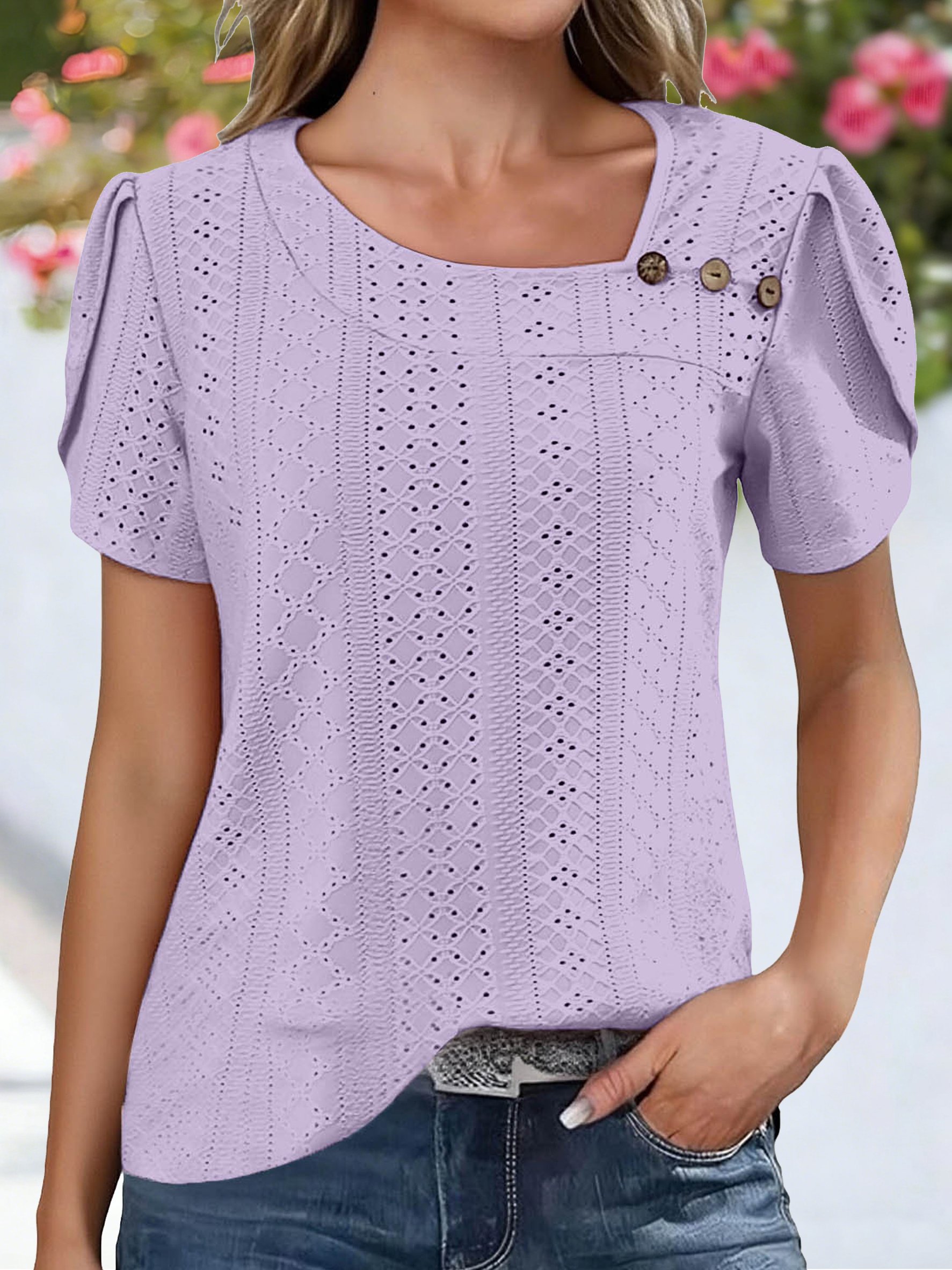 Casual Plain Asymmetrical Short Sleeve T-shirt