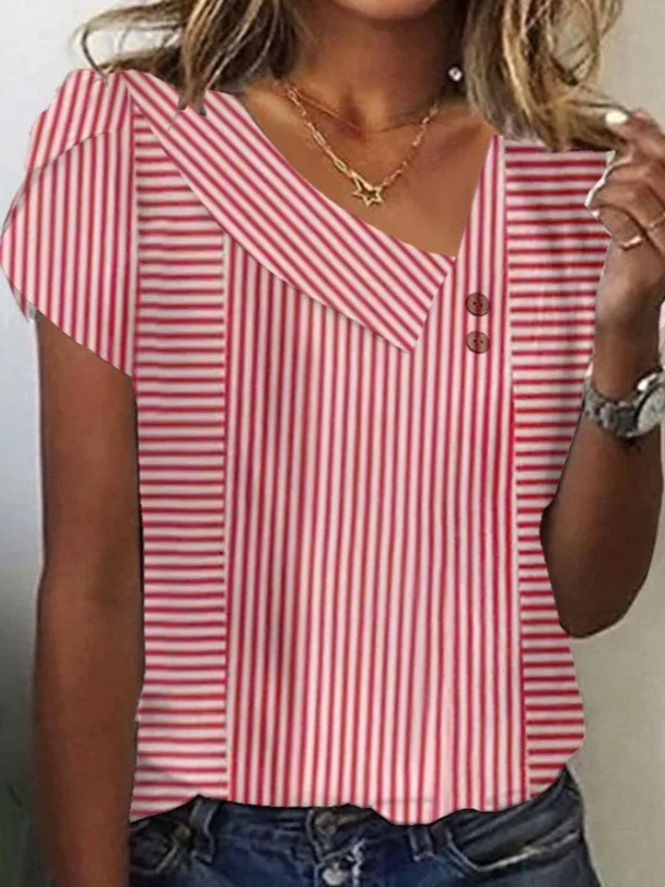 Casual Striped Asymmetrical Short Sleeve T-shirt