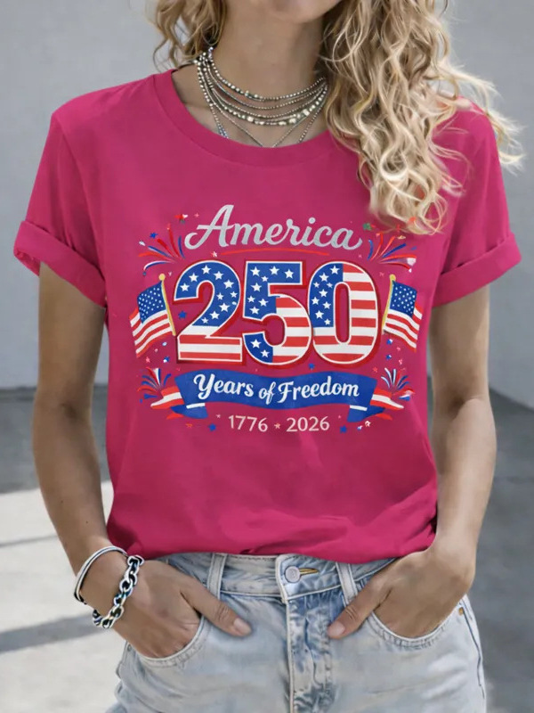 Casual Text Letters Crew Neck Short Sleeve T-shirt