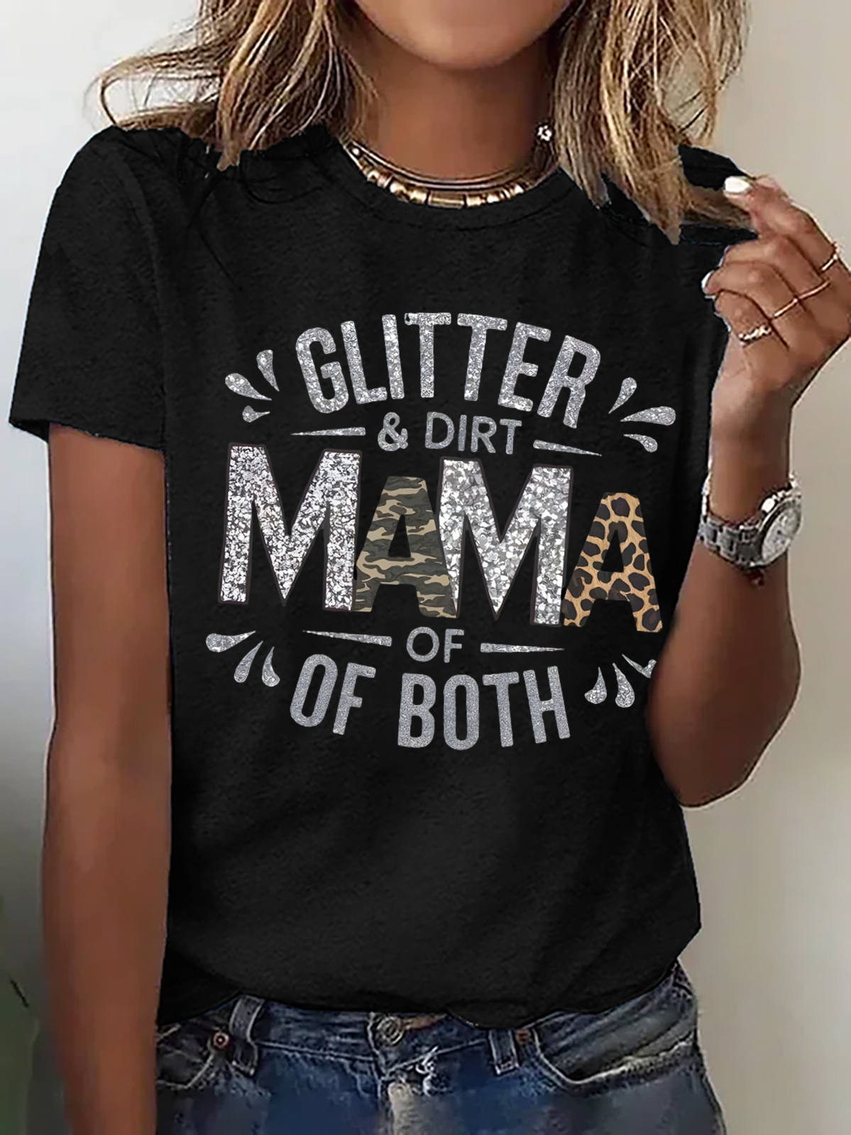 Casual Text Letters Crew Neck Short Sleeve T-shirt