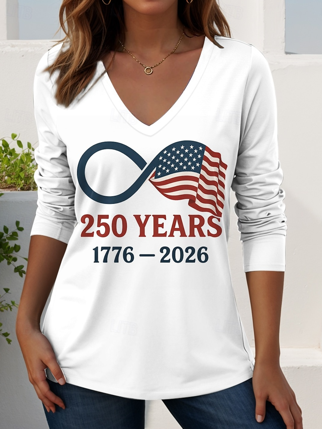 Casual Text Letters V Neck Long Sleeve T-shirt
