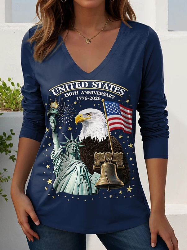 Casual Text Letters V Neck Long Sleeve T-shirt