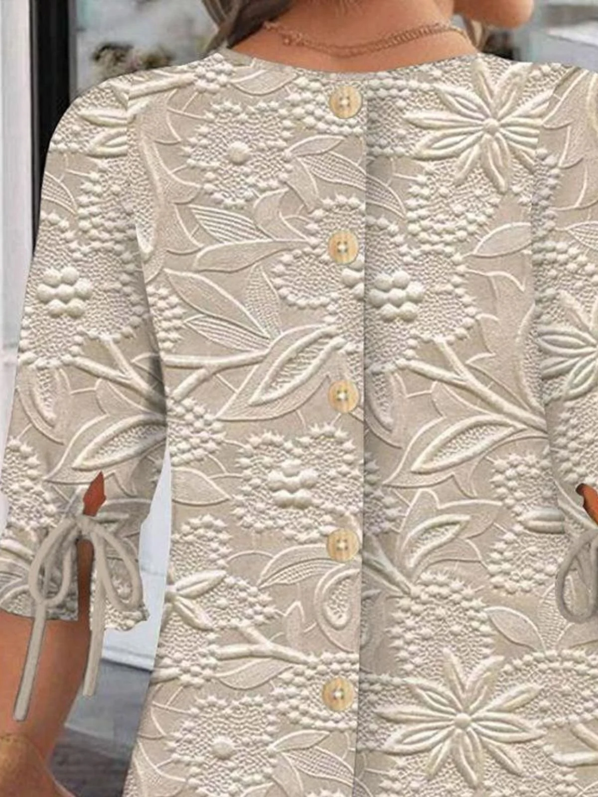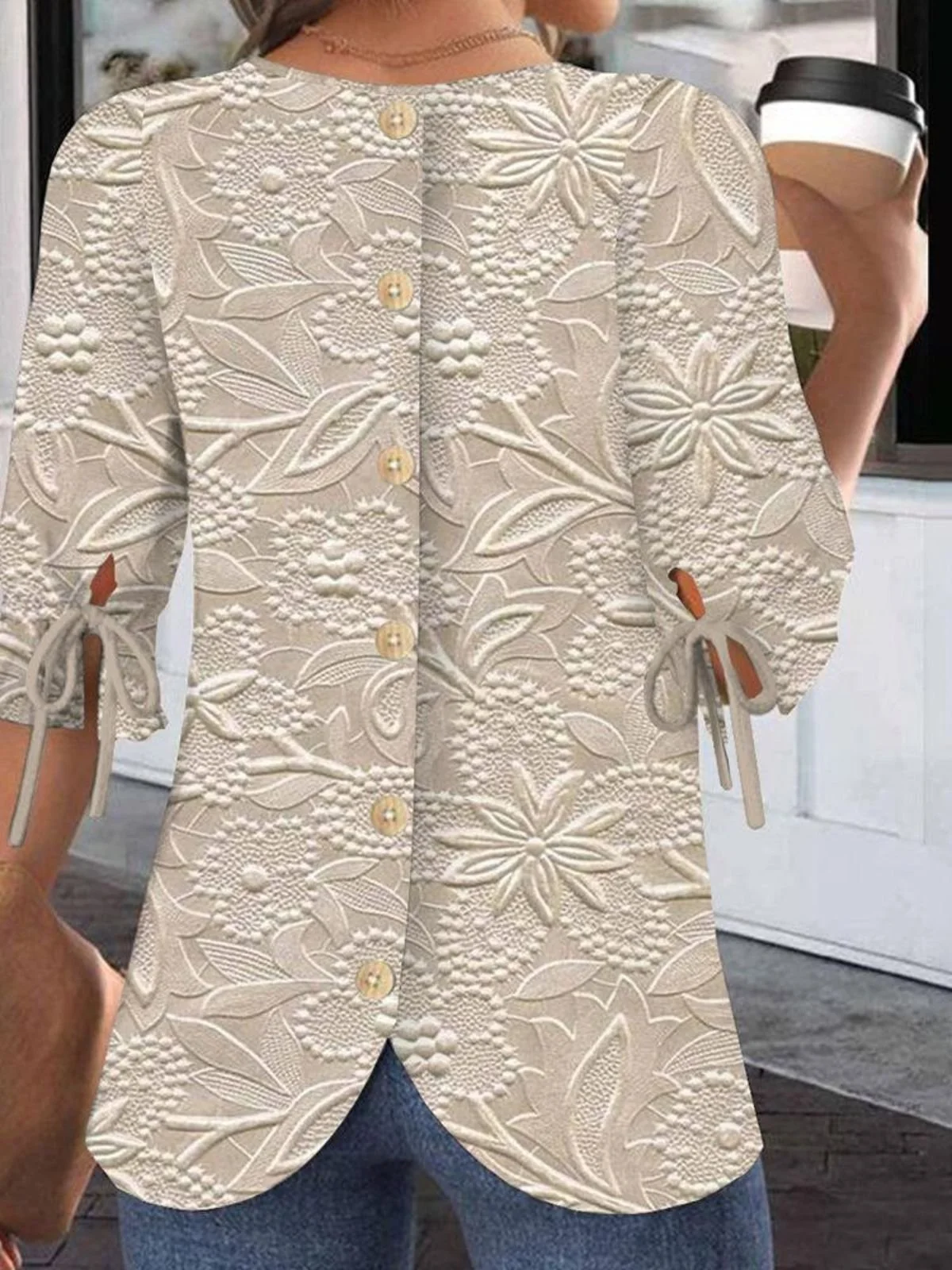 Crew Neck Balloon Sleeve Half Sleeve Floral Regular Micro-Elasticity Regular Fit Blouse For Women