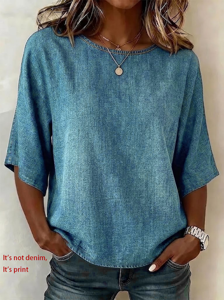 Crew Neck Half Sleeve Plain Printing Regular Micro-Elasticity Regular Fit Blouse For Women