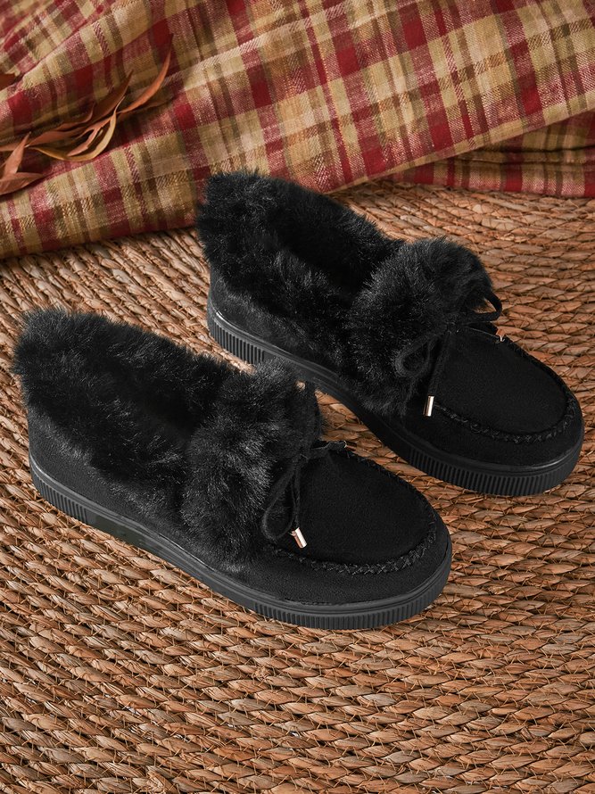 Vintage Plain All Season Wearable Daily Flat Shoes Faux Fur Slip On Deep Mouth Single Shoes for Women