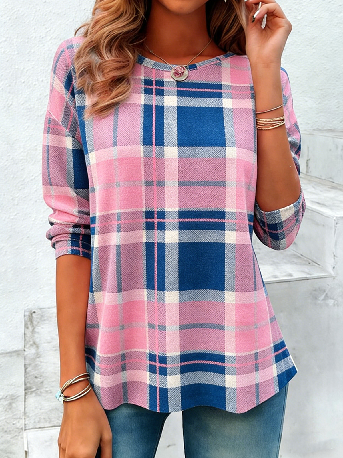 Elegant Geometric Crew Neck Long Sleeve T-shirt