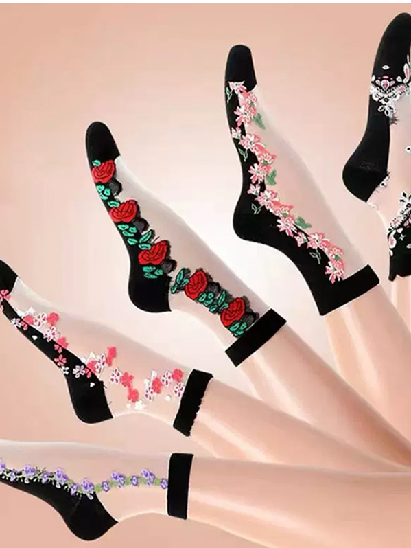 Hot Sale Women's Medium Tube Crystal Stockings Spring And Summer Thin Embroidered Glass Silk Women's Stockings Middle-aged And Elderly Non-slip Socks