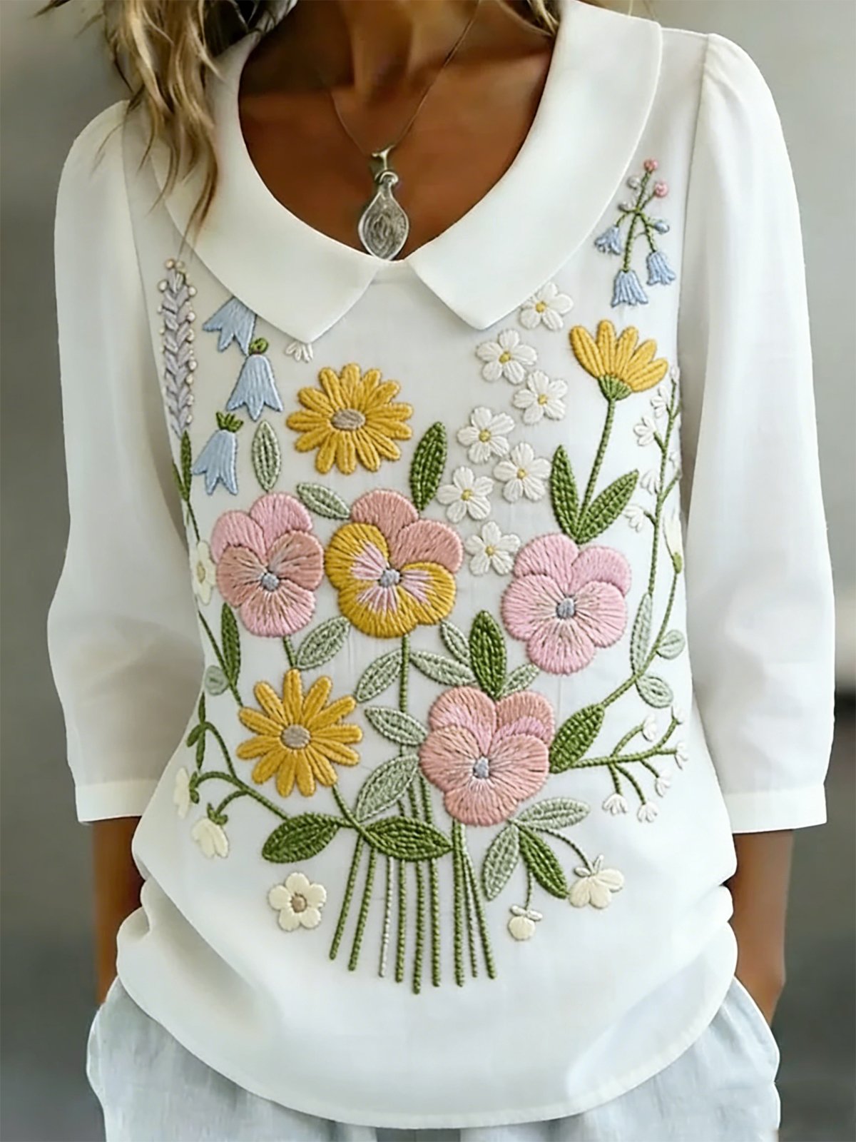 Shawl Collar Half Sleeve Floral Lightweight Loose Shirt For Women
