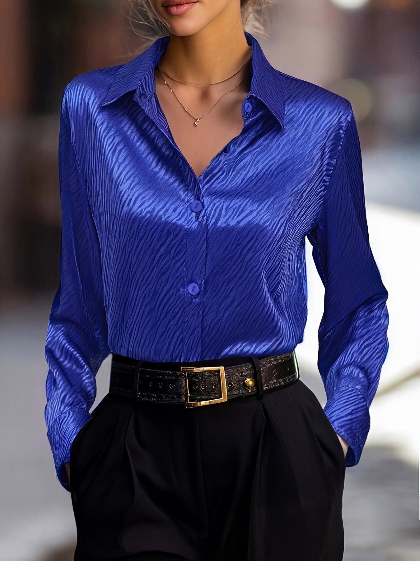 Shawl Collar Long Sleeve Zebra Regular Loose Shirt For Women