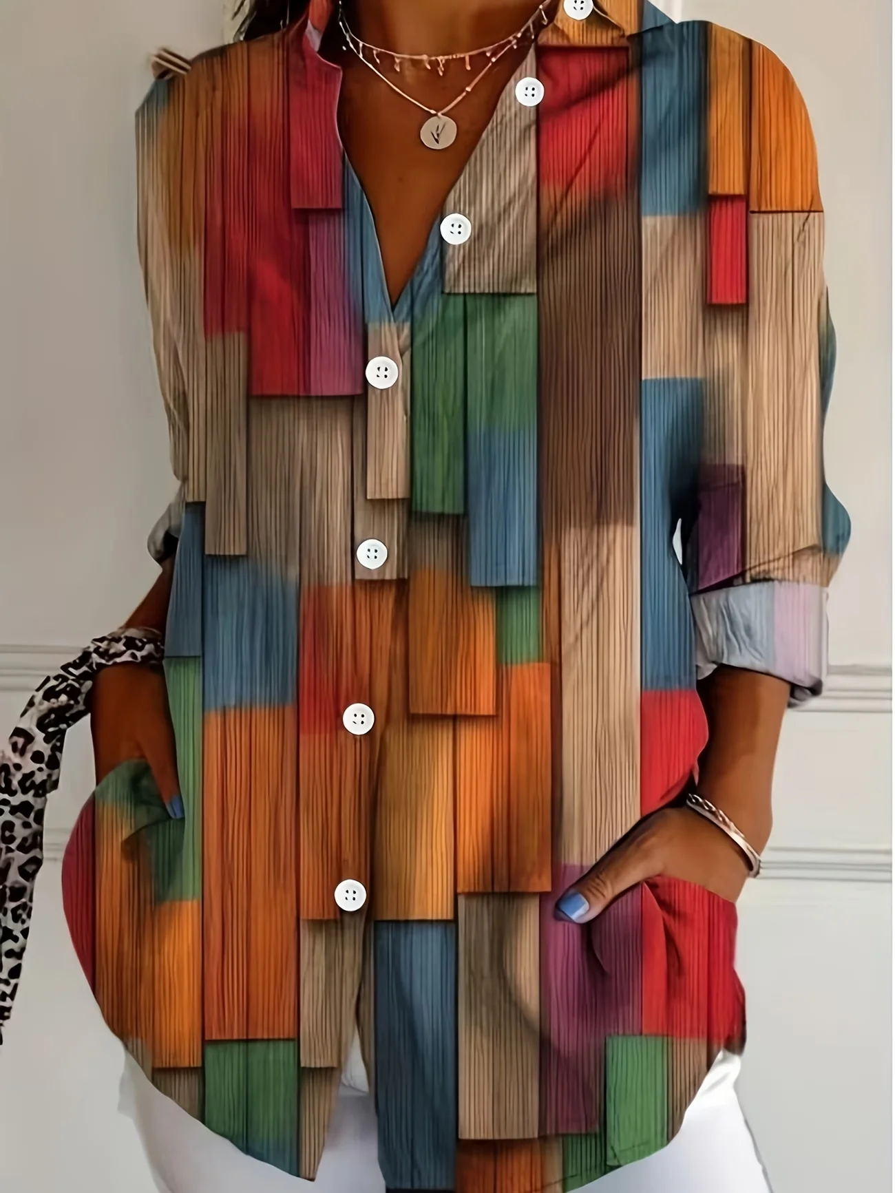 Shirt Collar Long Sleeve Abstract Buckle Regular Loose Button Up Shirt Shirt For Women