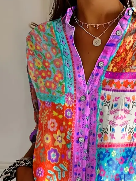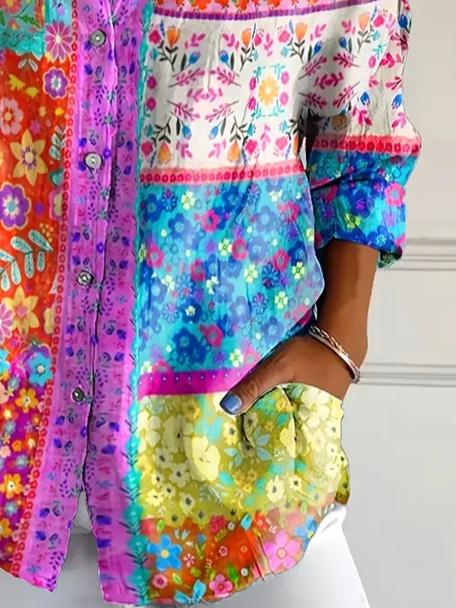Shirt Collar Long Sleeve Floral Buckle Regular Loose Button Up Shirt Shirt For Women