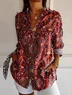 Shirt Collar Long Sleeve Geometric Regular Loose Shirt For Women
