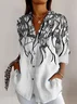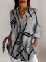 Shirt Collar Long Sleeve Geometric Regular Micro-Elasticity Regular Fit Shirt For Women