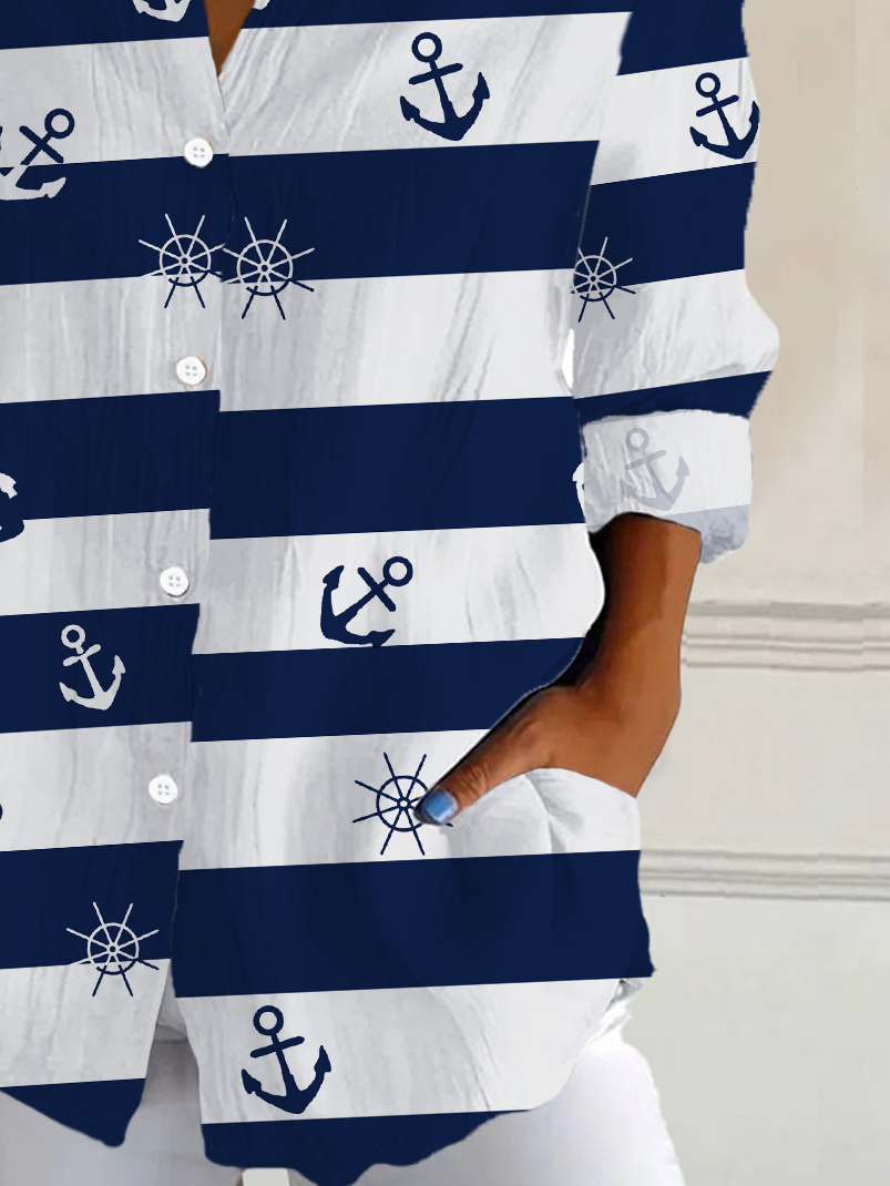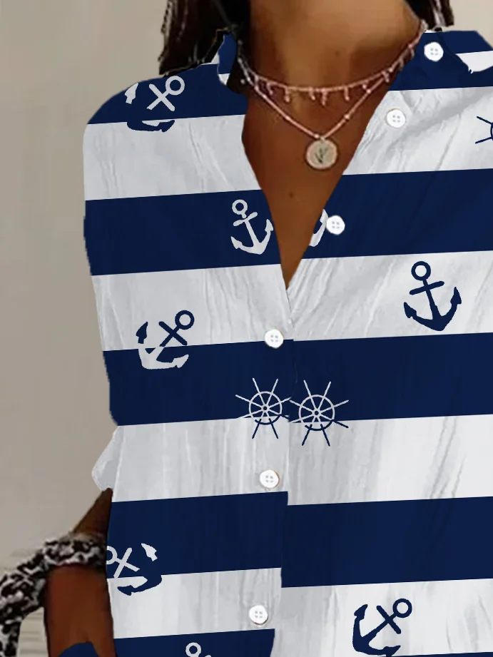 Shirt Collar Long Sleeve Striped Buckle Regular Loose Button Up Shirt Shirt For Women