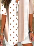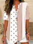 Shirt Collar Short Sleeve Striped Buttoned Regular Loose TUNIC Blouse For Women