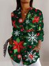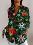 Shirt Collar Holiday Pattern Micro-Elasticity Regular Fit Shirt For Women