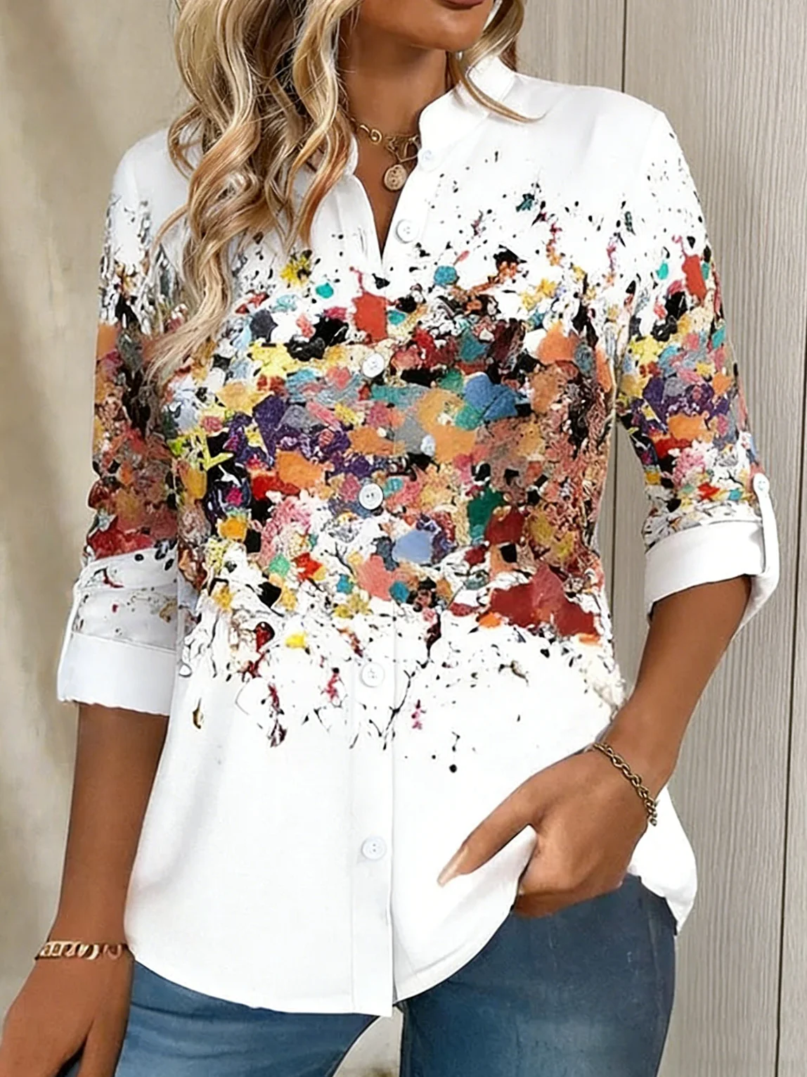 Stand Collar Long Sleeve Gradient Pattern Regular Loose Shirt For Women