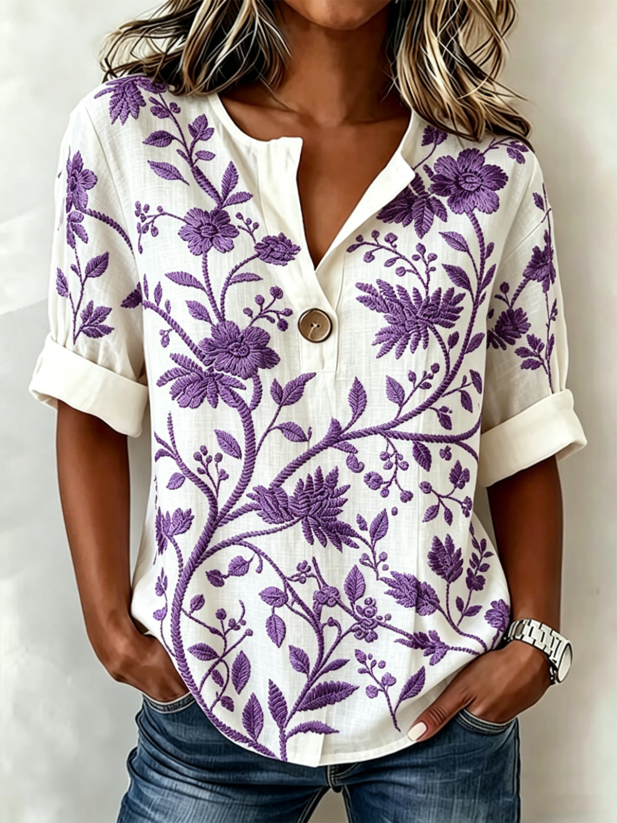 V Neck Half Sleeve Floral Regular Loose Shirt For Women